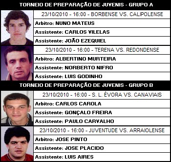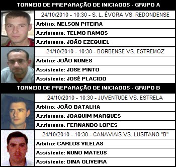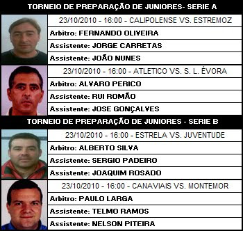 No âmbito das sessões técnicas coordenadas pela Comissão de Apoio Técnico da AFE que estão englobadas nos Centros de Treinos para Árbitros da Associação de Futebol de Évora, realiza-se hoje, pelas 19h, no Campo Pereira Bom em Bencatel a primeira sessão técnica da Época 2010/2011 conduzida pelo Coordenador do CAT, Jose Maria Santana e pelo Árbitro Éborense da Liga Portuguesa de Futebol Profissional, Luis Catita.É de todo importante a presença de todos para assim dar-mos condições de trabalho a quem nos vem transmitir conhecimentos bastante úteis.