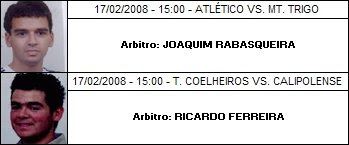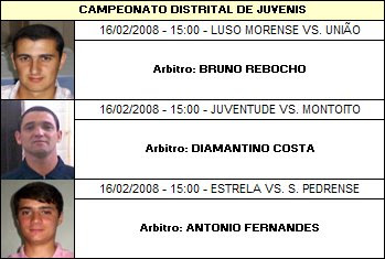 Gostaria de pedir desculpas a todos os visitantes que visitantes diáriamente prequentam este espaço mas esta semana não foi possivel obter as nomeações completas das equipas de arbitragem. Fica então somente os árbitros na promessa que para a semana as nomeações voltarão á normalidade. Obrigado.