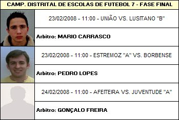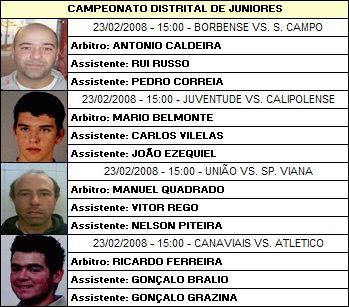 Um abraço aos poucos àrbitros com seriedade que andam neste distrital, como por exemplo a dupla que arbitrou sábado o jogo de infantis entre o arraiolense e a afeiteira, principalmente para o senhor josé gonçalves, que lhe foi vista uma preocupação em certos lances que nenhum outro àbritro vi infelizmente fazer.