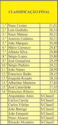 O anónimo tem razão naquilo que disse excepto a história do núcleo de Évora e zona dos mármores que já todos estamos fartos de ouvir. Passei em todos os testes com notas de 94,86 e 94 pontos e nao foi concerteza pelo facto de eu ser de Évora que me levou a tê-las. Aliás as minhas notas em campo nem foi nada de mais comparada com a de muitos colegas meus. É obviu que tenho mérito, mas esta classificação reflecte mais o demérito ou azar como queiramos dizer dos meus colegas.