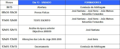 Convocam-se os árbitros do Quadro Distrital de Futebol de 11 e de Futsal, do Conselho de Arbitragem da Associação de Futebol de Évora para se apresentarem no dia 13 de Setembro de 2008, no Complexo Desportivo Municipal, em Vendas Novas, pelas 8.00 horas a fim de prestarem provas Escritas e Físicas de início de Época 2008/2009, com o seguinte programa:
