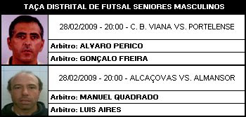 - Estrela V. Novas - Monte Trigo: Jogo importantissimo para o Estrela, visto que o seu concorrente directo pelo 1º lugar, montemor, está a um ponto e vai á casa do penultimo classificado. Trio de arbitragem que talvez só peque pelo arbitro principal, visto ser um jogo muito quente e com muita responsabilidade (Dou o beneficio da duvida, mas que seja uma grande arbitragem);